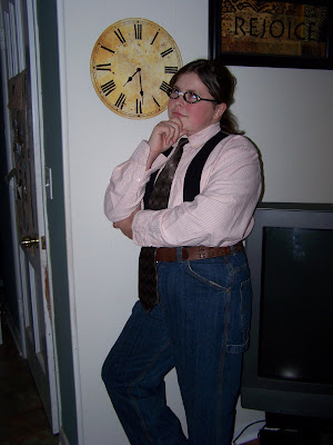But second to none, was little sister's re-creation of "The Nerd." Thoughtfully planning each detail all by herself, she created a costume complete with high-pocket jeans, suspenders, a tie, and glasses donning classic white tape!